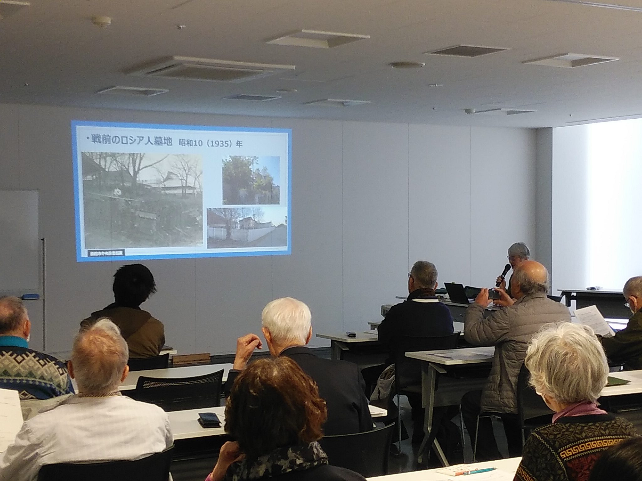 ロシア人墓地については、馬場脩『函館外人墓地』(図書裡会・1975年)が基本文献であることは、今なお変わりませんが、地域に残されている記憶や先行研究の蓄積をしっかりと受け継ぎつつ、アップデートが必要であることを念頭にお話しされました。